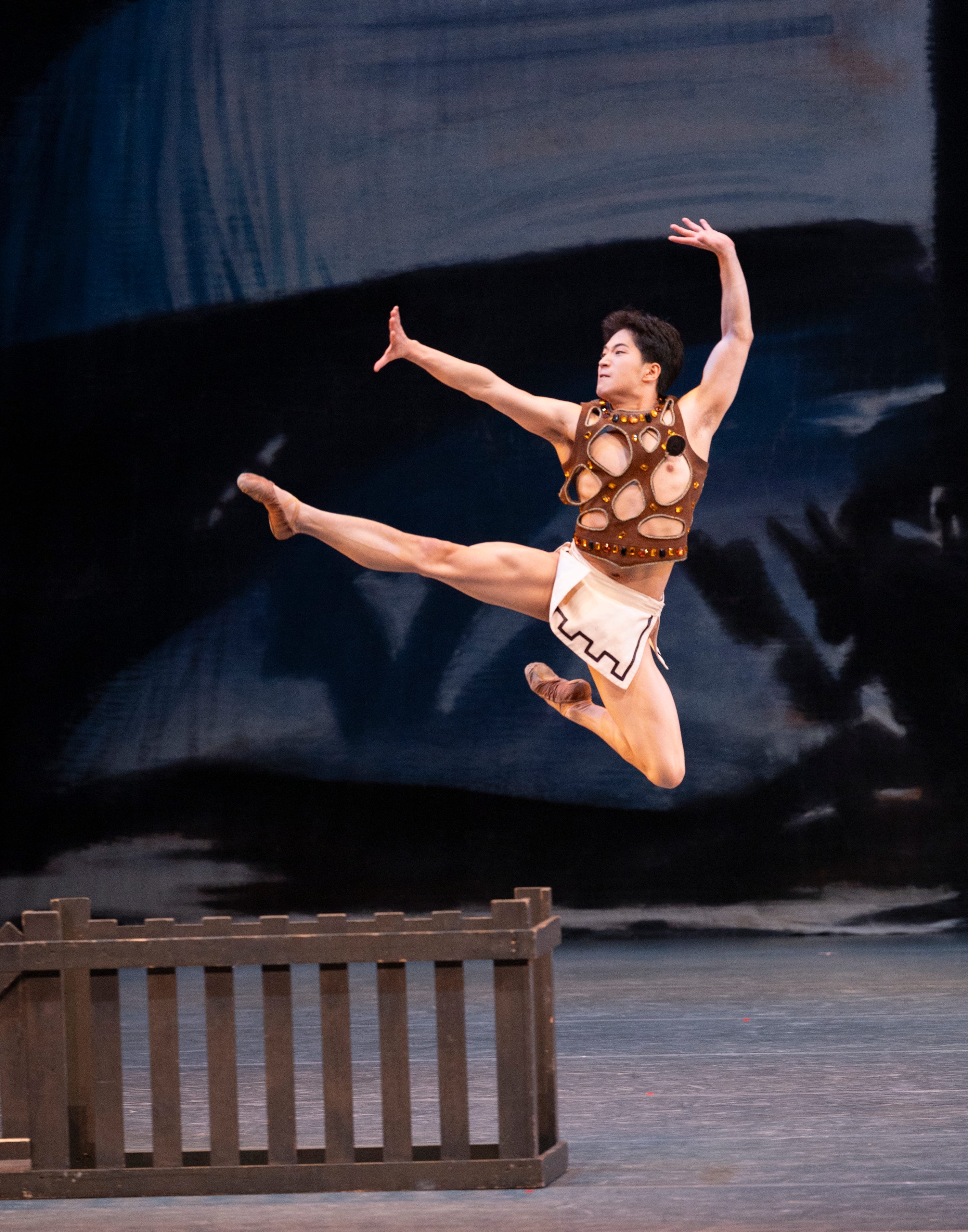Soloist Kuu Sakuragi gave a solidly convincing performance of the titular prodigal son. He’s a boy who defies his father to face the challenges of the outside world, only to wind up literally crawling home to beg forgiveness. Sakuragi, sporting a haircut that made him look about 15 years old, has the technical chops to dance the title role, but more than that, his dramatic chops also stood up to the challenges Prodigal presents. (I’ve seen many PNB veterans dance the role at retirement performances, including James Moore this past June. Lucien Postlewaite and Batista rotate in the role this month, but I didn’t see them opening weekend. Instead, we got thrill of watching a younger dancer get his chance to tackle the role).